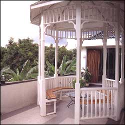 เจ้าของบ้าน นำศาลา 8 เหลี่ยมสีขาวรุ่น American Dream Special ตั้งเอาไว้บนพื้นที่ส่วนต่อเติมใหม่ เพื่อรองรับกิจกรรมในยามพักผ่อน รูปแบบของศาลาอเนกประสงค์นี้ ดูโปร่งโล่งเรียบง่าย เหมาะกับพื้นที่โดยรอบ.