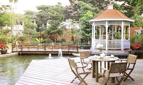 ![]() เชื่อมลานอเนกประสงค์ กับศาลาพักผ่อนด้วยสะพานไม้ พร้อมประดับบ่อปลาด้วยโอ่งน้ำพุเล็กๆ เพื่อสร้างจุดสนใจ | |||||||||