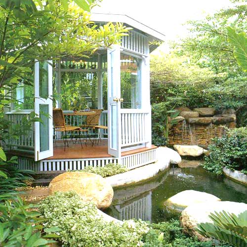 แนวทางการตกแต่งบ้านหลังนี้ มีที่มาคือเจ้าของบ้านทั้งสองท่าน เคยมีโอกาสได้ใช้ชีวิต อยู่ในสหรัฐอเมริกาเป็นเวลานาน จนทำให้เกิดความประทับใจ และดื่มด่ำ กับบรรยากาศของบ้านที่นั่น เมื่อกลับมาอยู่ที่เมืองไทย สิ่งที่เคยสัมผัสและคุ้นเคย ยังคงตราตรึงอยู่ในจิตใจ จนกระทั่ง มีโอกาสสร้างบ้านเป็นของตนเอง และบ้านหลังนี้ สร้างบนพื้นที่ประมาณ 200 ตารางวา ชานเมืองย่านถนนงามวงศ์วาน เมื่อมองจากภายนอก จะเห็นตัวบ้าน สร้างเกือบเต็มที่โดยเฉพาะด้านกว้าง ประกอบด้วยบ้านหลังใหญ่สองชั้นหนึ่งหลัง ที่ประยุกต์แบบมาจากบ้านสไตล์อเมริกัน ใช้เป็นที่พักอาศัยของครอบครัว ที่มีพ่อ แม่ และลูกชายสองคน กับบ้านอีกหลังเล็กชั้นเดียวอีกหลังหนึ่ง สำหรับคุณพ่อคุณแม่ของคุณศิระ ทั้งสองหลัง สร้างเชื่อมต่อกันได้อย่างกลมกลืน ด้านหน้าเว้นพื้นที่ไว้เพื่อจัดเป็นสวนน้ำตกขนาดพอเหมาะ แนวของสายน้ำด้านหนึ่ง มาบรรจบที่ระเบียงหน้าบ้าน ส่วนอีกด้านหนึ่ง ไหลต่ำลงไปเป็นแอ่งน้ำเล็กๆ มุมหนึ่งของสวนข้างน้ำตก มีเรือนกระจกแปดเหลี่ยม ขนาดเล็กดูน่ารัก เรือนกระจกที่ว่า คือศาลาขนาดพอเหมาะ ในบริเวณสวนข้างน้ำตก คุณศิริวรรณเล่าให้เราฟังว่า "ศาลานี้ เราไปเลือกซื้อกันมาเองเลยนะคะ ร้านอยู่แถวๆ ถนนจรัญสนิทวงศ์ เป็นของ บริษัท ศาลา-ท่าน้ำ จำกัด ตอนซื้อก็ถามเขาว่า มีศาลาที่ติดเครื่องปรับอากาศได้ไหม ทางบริษัทบอกว่าเคยทำบ้าง แต่ไม่มีตัวอย่าง ต้องสั่งถึงจะทำให้ เป็นอีกส่วนใช้สอยหนึ่งที่ชอบ และใช้งานบ่อย ส่วนมากใช้ตอนเย็นๆ ค่ำๆ แต่เนื่องจากยุงเยอะ จึงต้องติดแอร์ค่ะ"