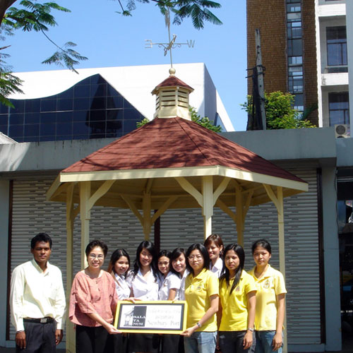 | บริษัท ศาลาท่าน้ำ จำกัด รู้สึกยินดีเป็นอย่างยิ่ง ที่ได้มีโอกาสมอบศาลาทรง 6 เหลี่ยม รุ่น NEWBURY PORT ขนาดเส้นผ่าศูนย์กลาง 3.00 เมตร ให้กับทางมหาวิทยาลัยธรรมศาสตร์ วิทยาเขตท่าพระจันทร์ หน้าบริเวณคณะวารสารศาสตร์และสื่อสารมวลชน เพื่อใช้เป็นสถานที่อ่านหนังสือ และนั่งพักผ่อนตามอัธยาศัยของนักศึกษา อาจารย์ บุคคลากร และประชาชนที่สัญจรไปมาผ่านทางมหาวิทยาลัย