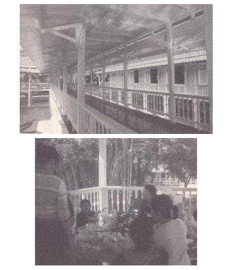 บน: ระเบียงยาว สำหรับเข้าสู่หมู่พระที่นั่งพิศาลสาคร