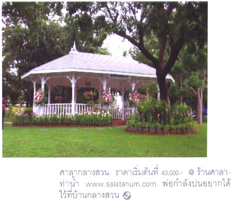 นอกจากกระเป๋า รองเท้า กาแฟ ช็อกโกแลต น้ำหอม เสื้อแจ๊คเก็ต ที่คุณไอซ์ใส่ในคอลัมน์ Wish List ในนิตยสารสุดสัปดาห์ ให้แฟนๆ ได้ทราบแล้ว ของชิ้นเล็กที่กล่าวมาทั้งหมด ยังมีัของขนาดใหญ่ ที่คุณไอซ์อยากได้ไม่แพ้กันนะคะ คือ.... ศาลากลางสวนของเรา (ถ้าเดาใจคุณไอซ์ ก็น่าจะเป็นรุ่นที่เห็นอยู่ในภาพ คือรุ่น Aroma Marina) ที่คุณไอซ์บ่นในหนังสือ (ดังๆ) ว่าคุณพ่อกำลังอยากจะได้ เอาไว้ที่บ้านกลางสวน ถ้าเกิดแฟนๆ คุณไอซ์ท่านใด อยากเซอร์ไพรส์คุณไอซ์และครอบครัว โทรศัพท์มาได้ที่เบอร์ 02-412-4225, 418-3917 หรือ 418-3860 เรายินดีนำชมศาลาตัวอย่างของเรา หรือถ้าไม่ทันใจ ก็กรุณาคลิ๊กได้ที่นี่้ค่ะ เพื่อชมรูปศาลารุ่นต่างๆ ที่เรามีค่ะ